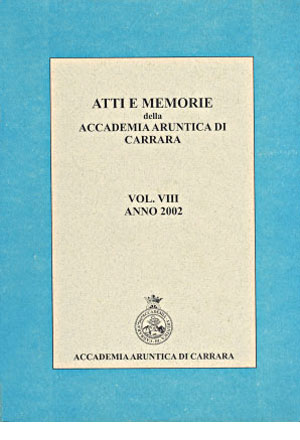 L' VIII volume degli Atti e Memorie dell'Accademia Aruntica di Carrara contiene le seguenti relazioni: Claudio Pisani – Commemorazione del Socio Aggregato Carlo Agostino Marchetti